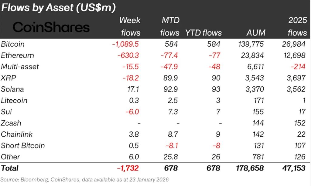- Bitcoin (BTC): Bitcoin experienced outflows from investors this week. Bitcoin-focused funds saw outflows of $1,089.5 million.