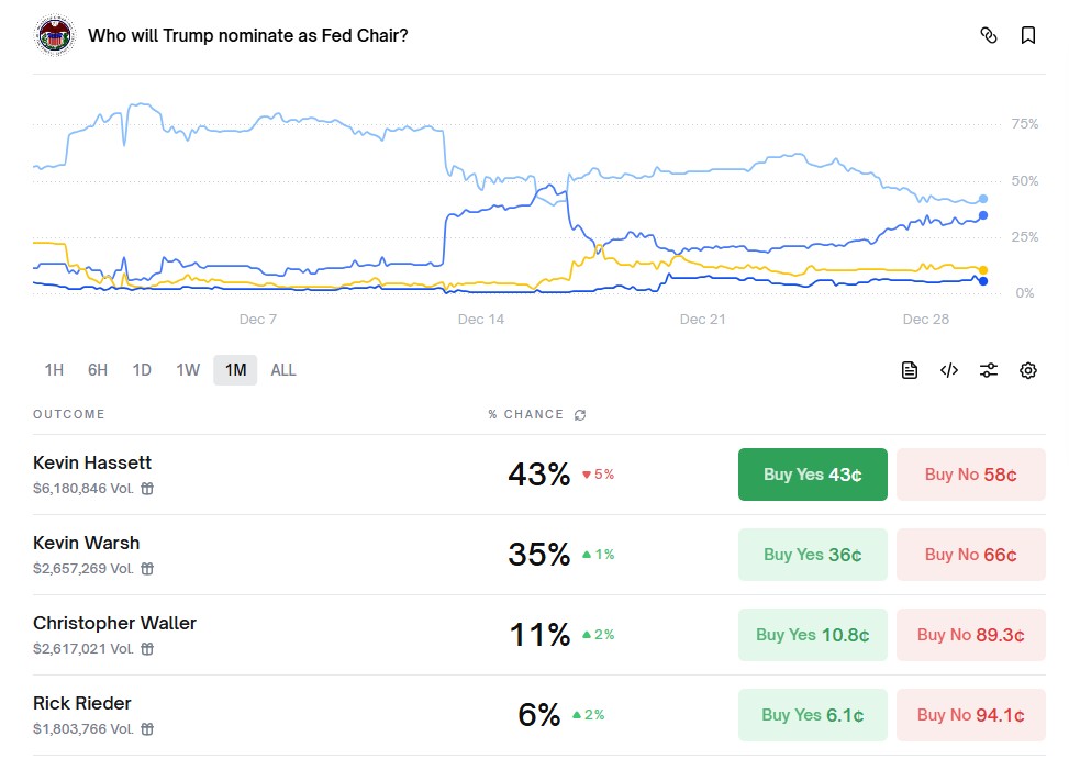 The second candidate is Miran, a member of the Fed. He said he is in favor of a half-point cut. Schmid and Goolsbee, on the other hand, expressed their opinion that interest rates should remain unchanged. However, Trump said that “urgent interest rate cuts are mandatory” for the new Fed Chair. Fed members, on the other hand, said they forecast a two-quarter-point interest rate cut for 2026. Miran’s unwillingness to act in line with these demands reduces his chances of becoming chairman. The other candidate is Kevin Warsh. A former Fed Board member and an experienced figure in economic circles, Warsh is priced as a rising alternative in prediction markets. According to some market forecasts, he is close to Hassett’s level. There are views that he is supported by major financial names such as JPMorgan. Christopher Waller is a current Fed board member and one of the names being considered for after Powell. He has been mentioned positively by Trump in public. He is priced lower in prediction markets but has supporters. Another candidate is Rick Rieder, a name from the global investment arena, such as BlackRock. These individuals are not priced as strongly as the leading trio but are being evaluated in this process.