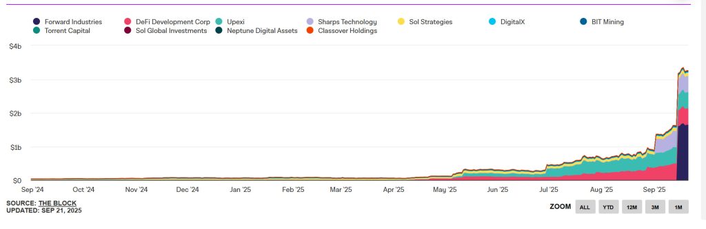 This momentum is likely to continue as Forward Industries launched its own Solana treasury strategy with $1.65 billion PIPE, becoming the largest Solana treasury overnight. This suggests that we are only at the beginning of this trend and as Solana’s ecosystem continues to expand, more public companies will follow suit.